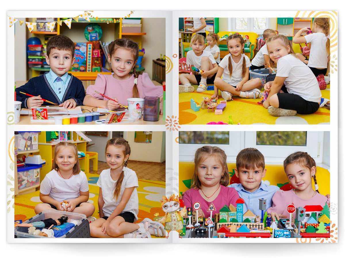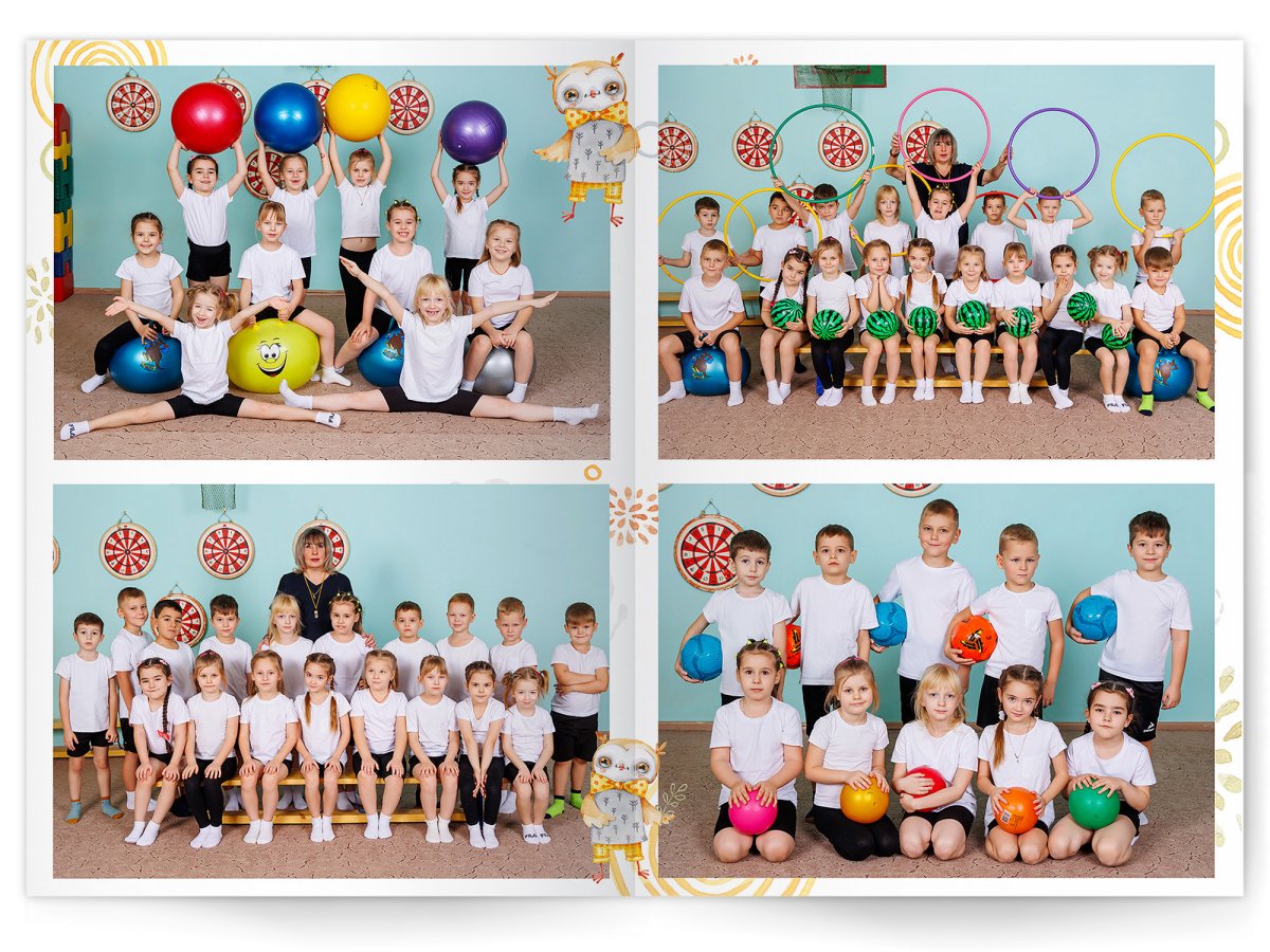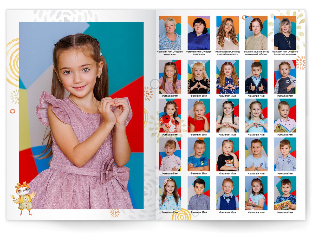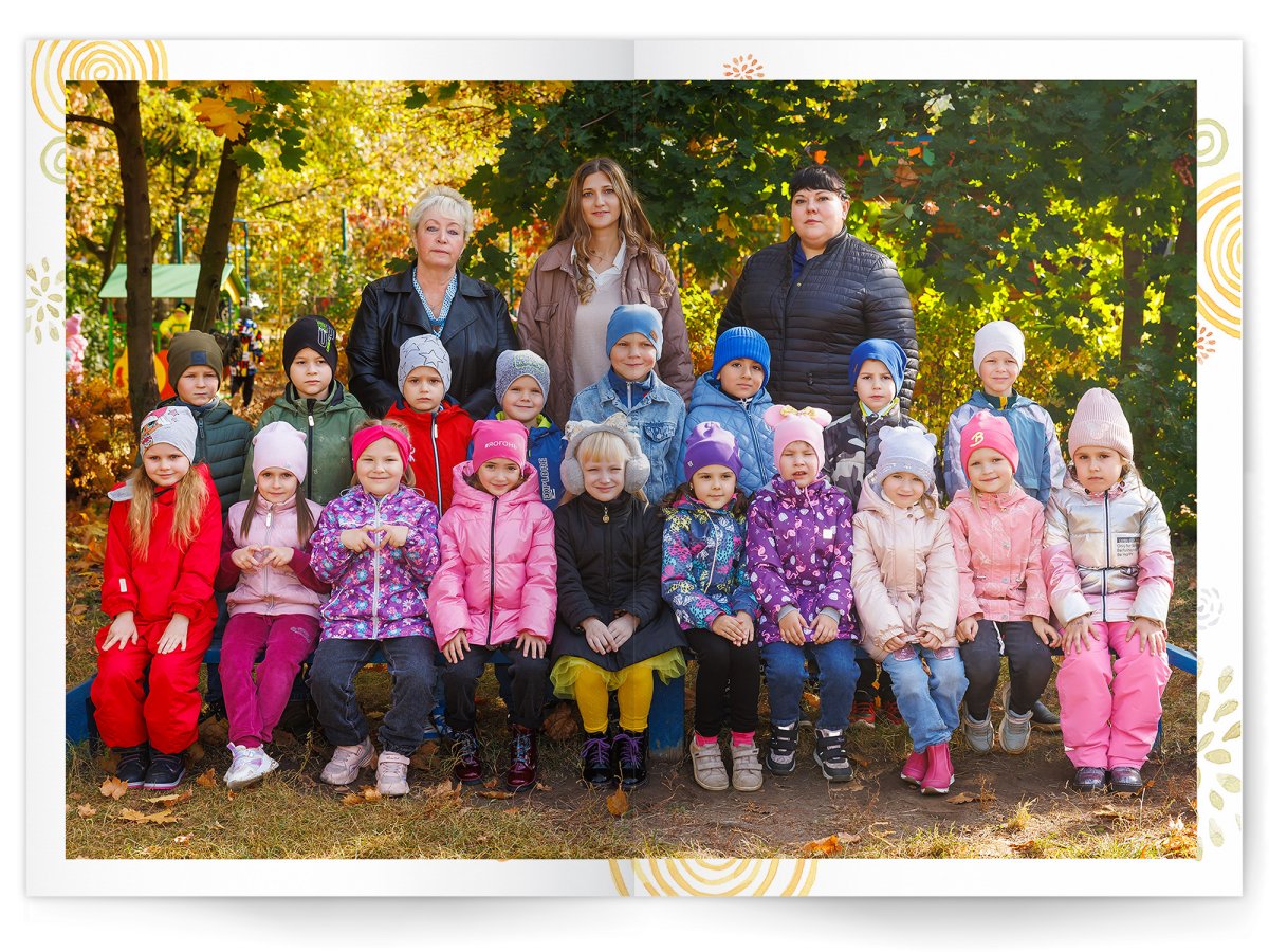 • Портреты всех детей и воспитателей на развороте