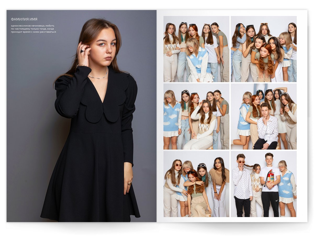 - Портреты всех одноклассников на развороте