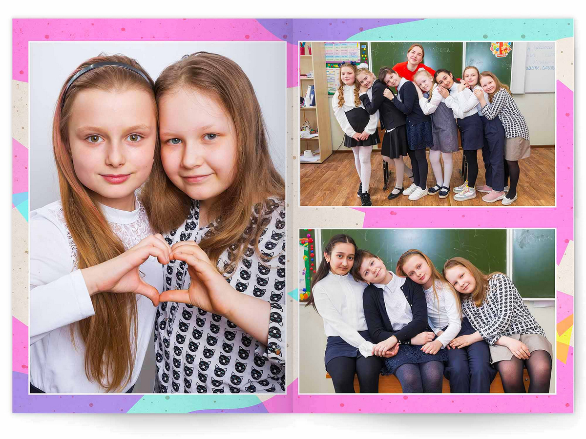 - Разворот с твоим портретом на всю страницу и от 2 до 4 фото на выбор