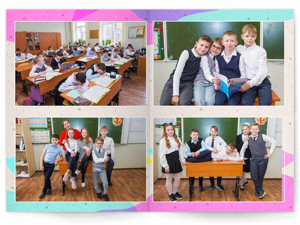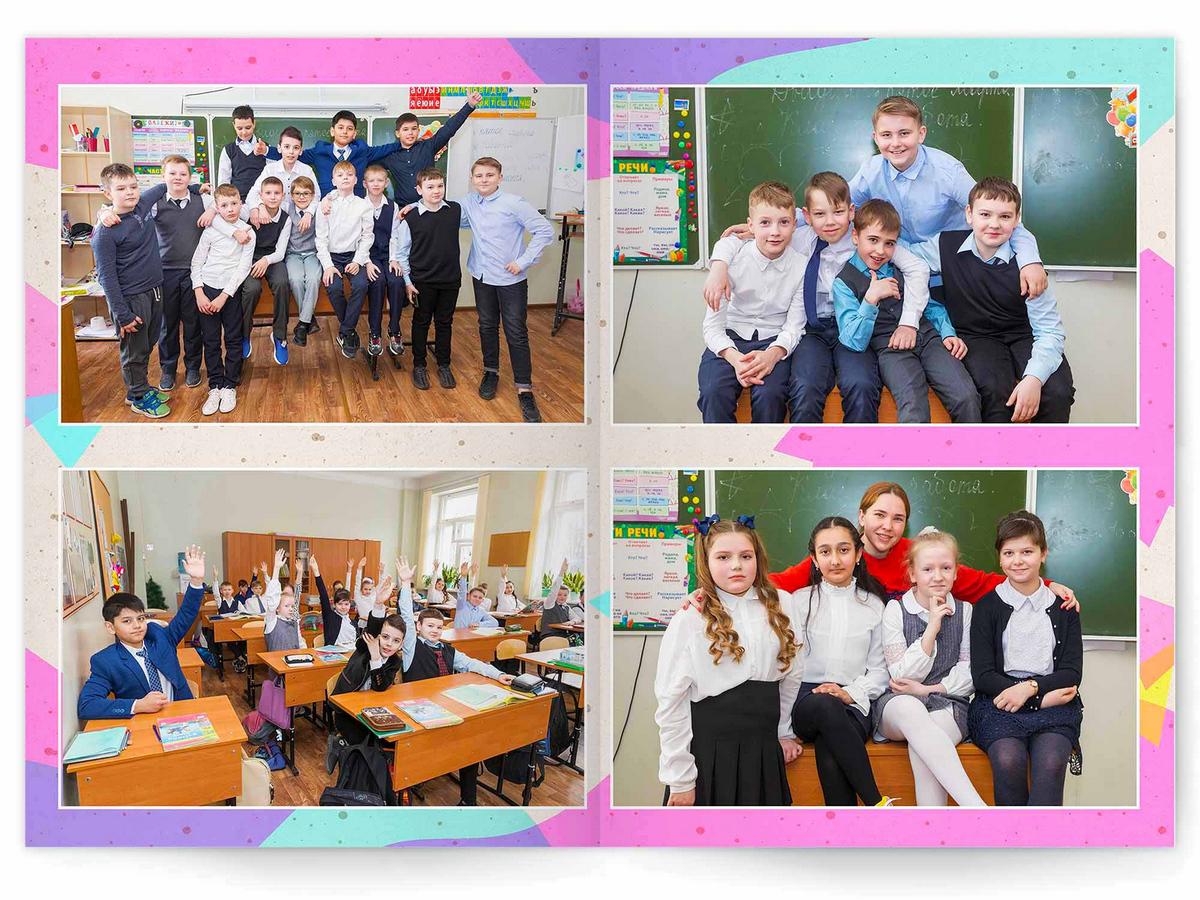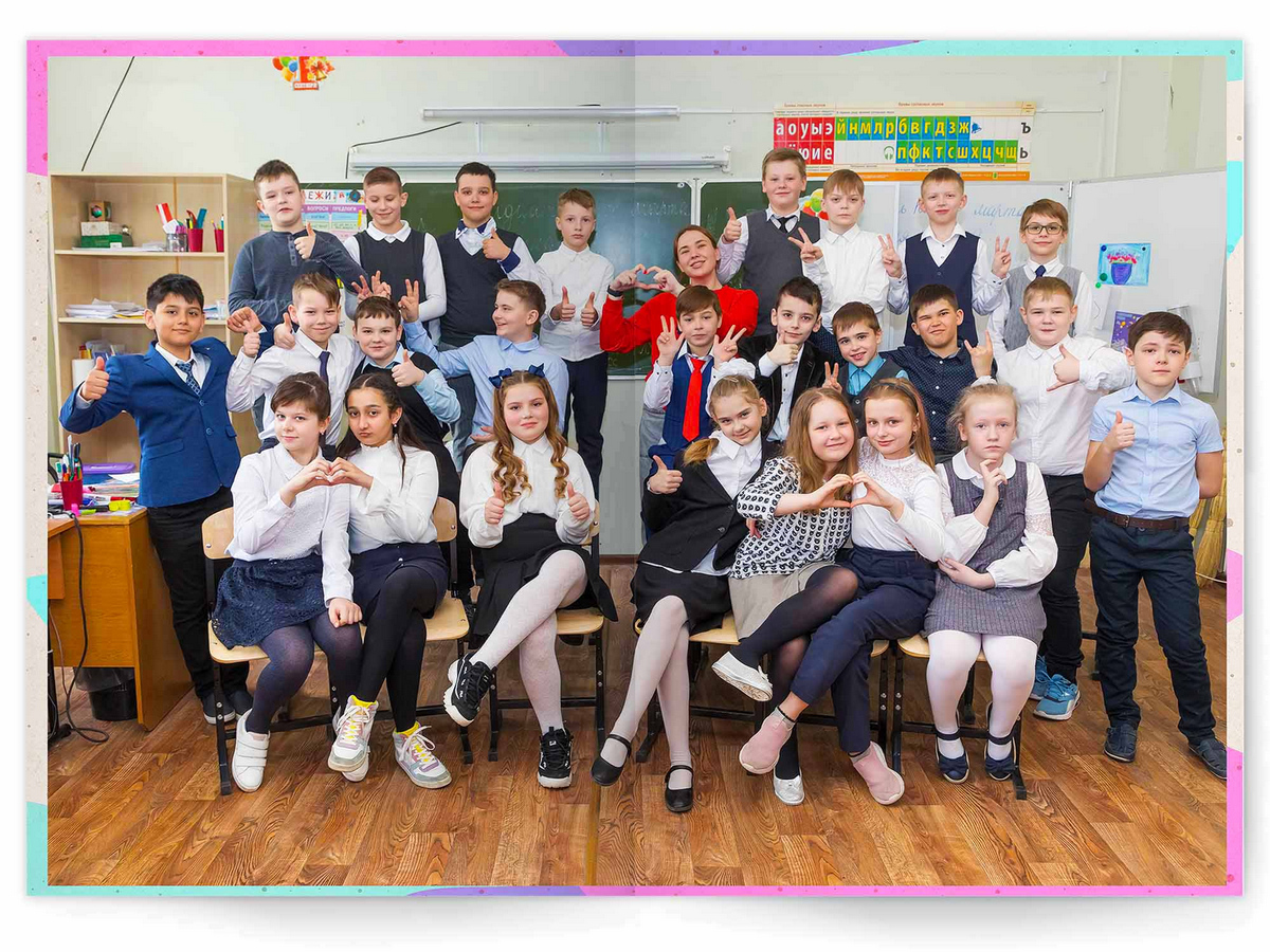 - Портреты всех одноклассников на развороте