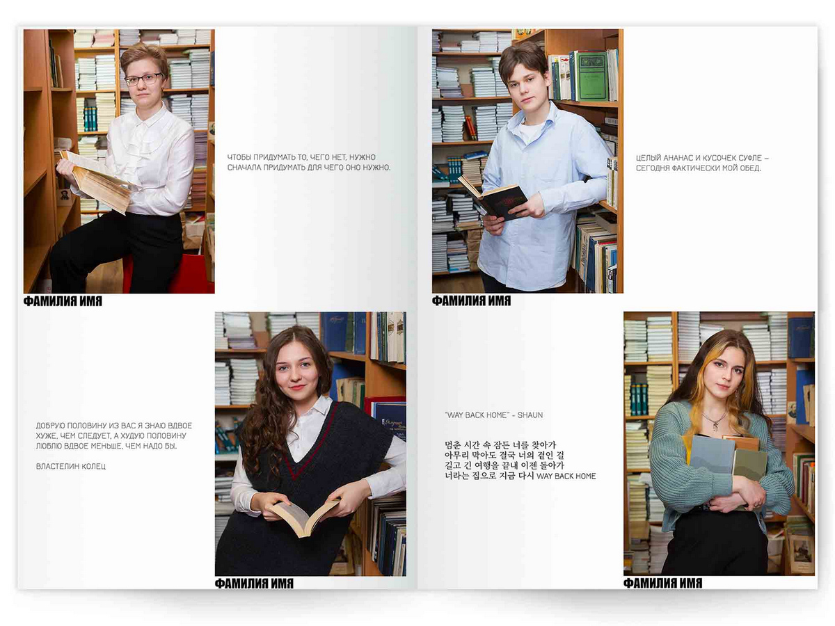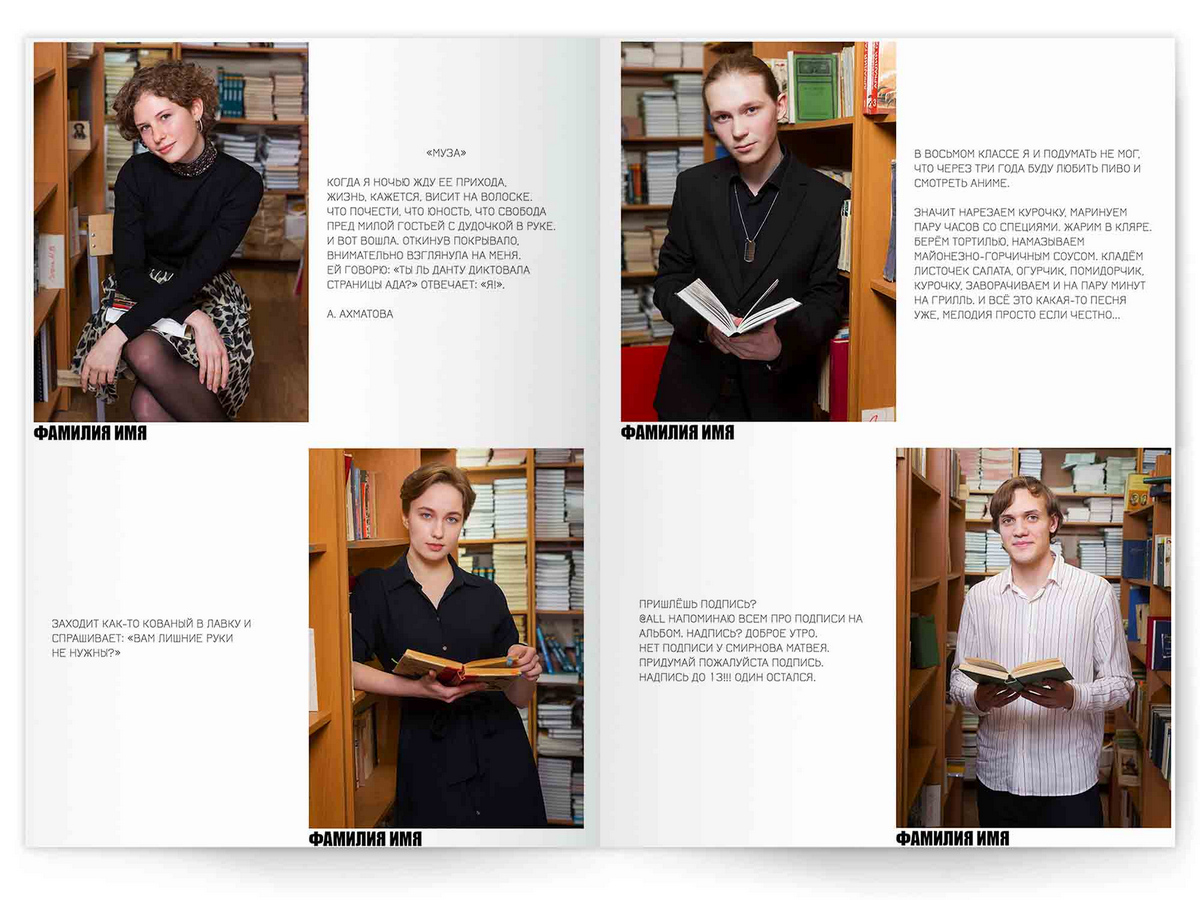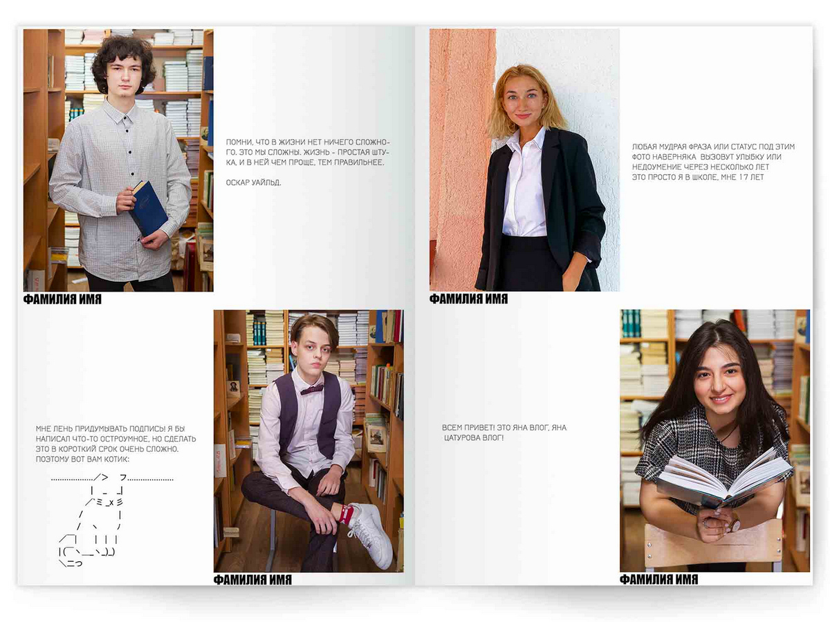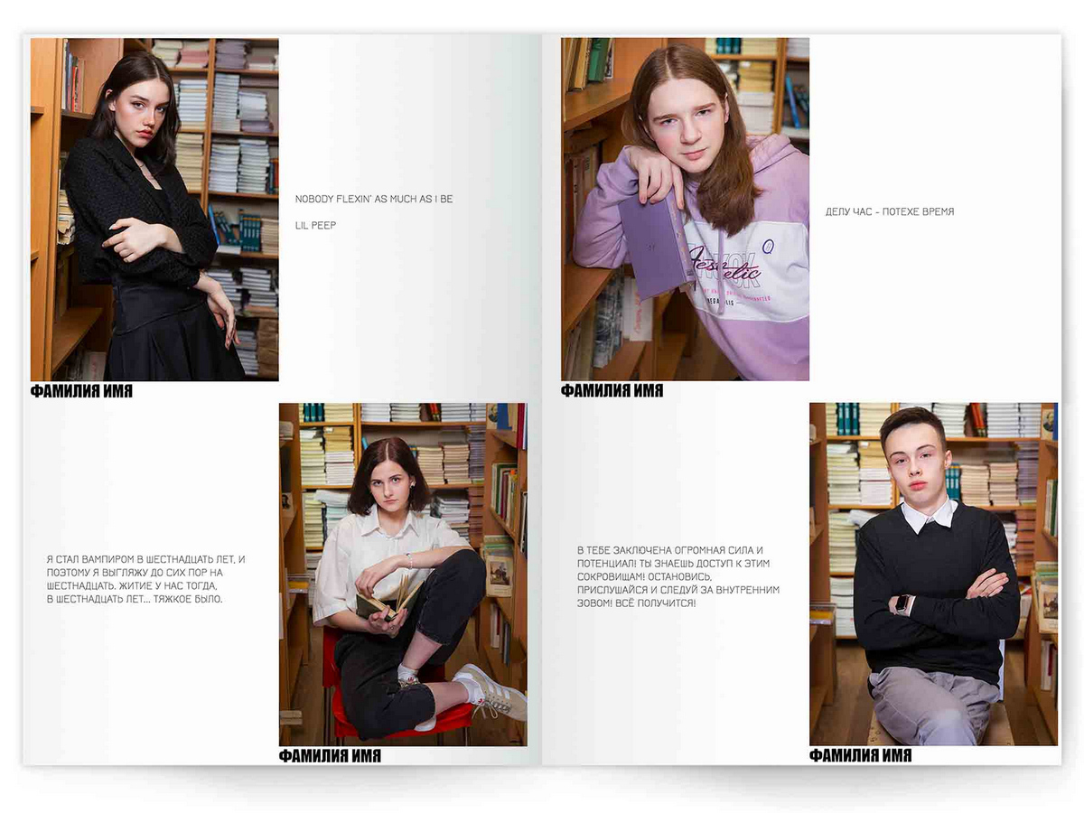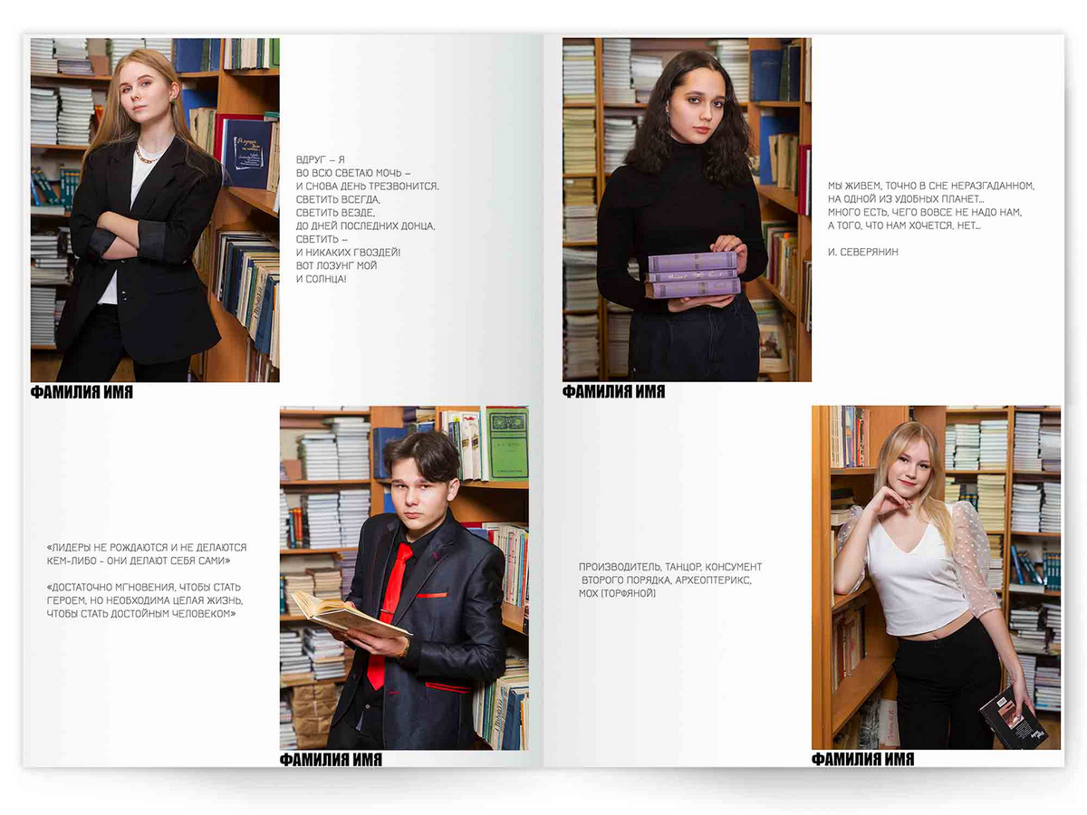 - Разворот с твоим портретом на всю страницу и от 2 до 4 фото на выбор