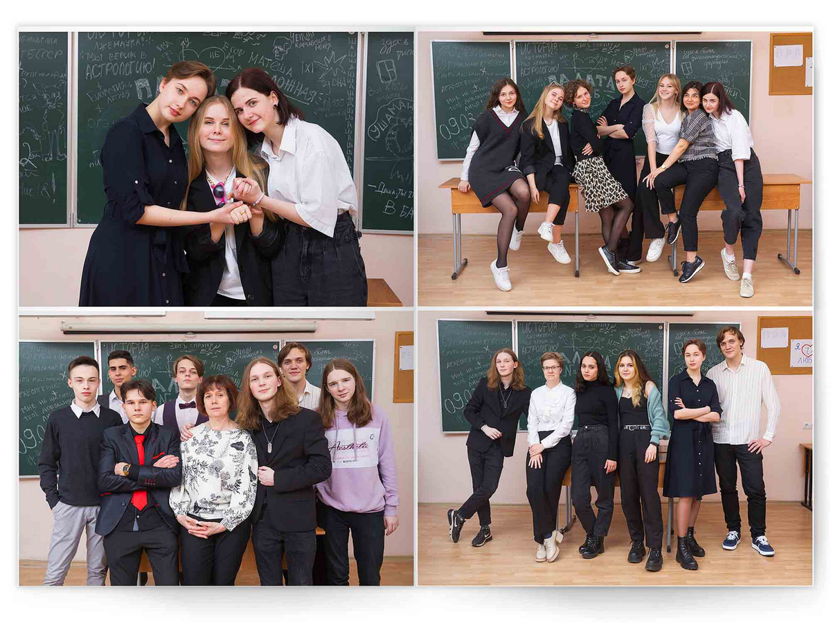 - Портреты всех одноклассников по 2 человека на страницу с историями-заметками