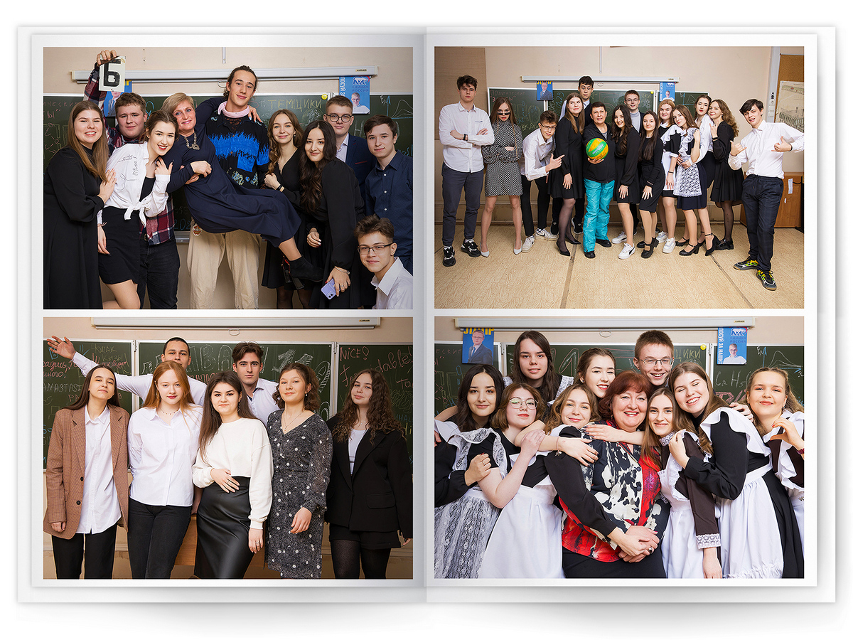 - Разворот с твоим портретом на всю страницу и от 2 до 4 фото на выбор