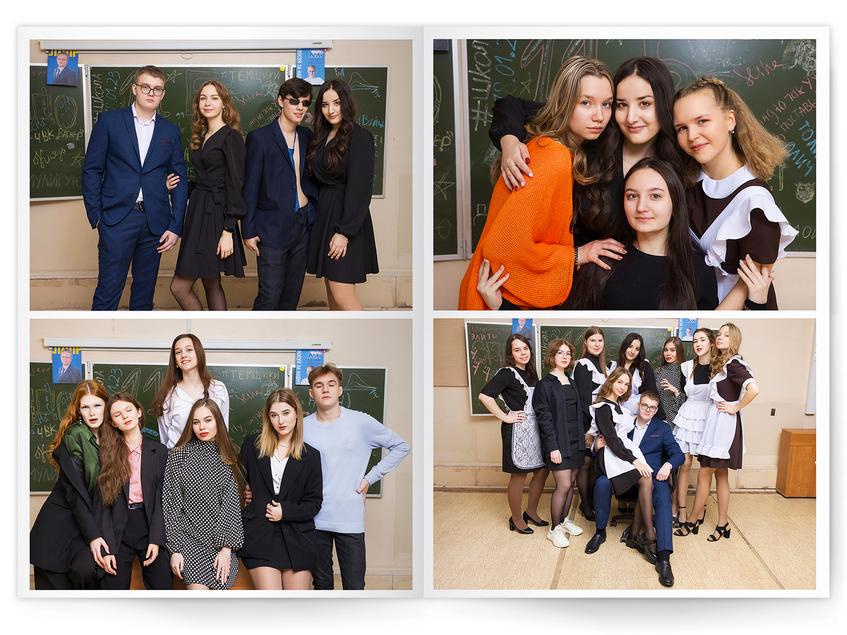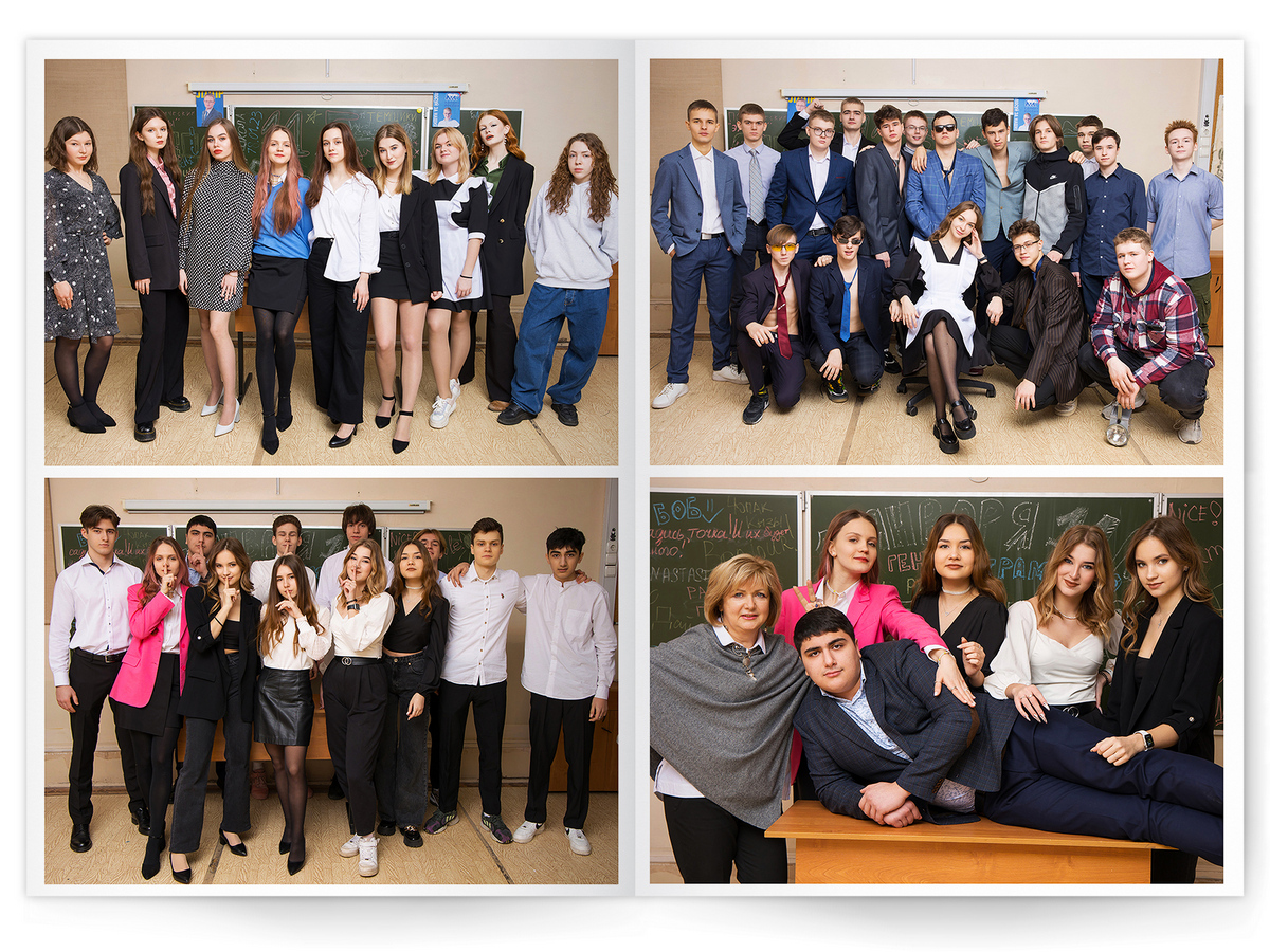 - Портреты всех одноклассников по 2 человека на страницу с историями-заметками