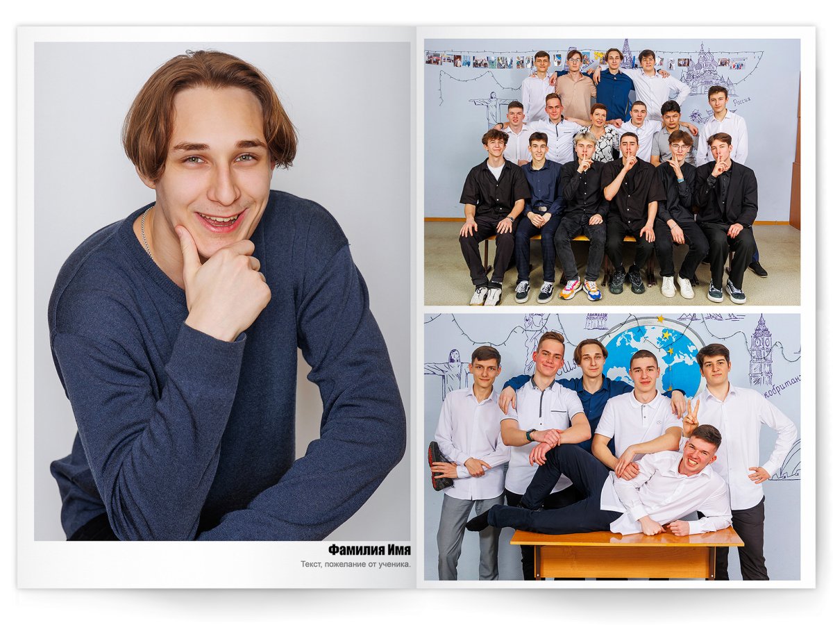 • Съёмка альбома в фотостудии от +750 ₽/человек (точная стоимость зависит от количества учеников и выбранной фотостудии)